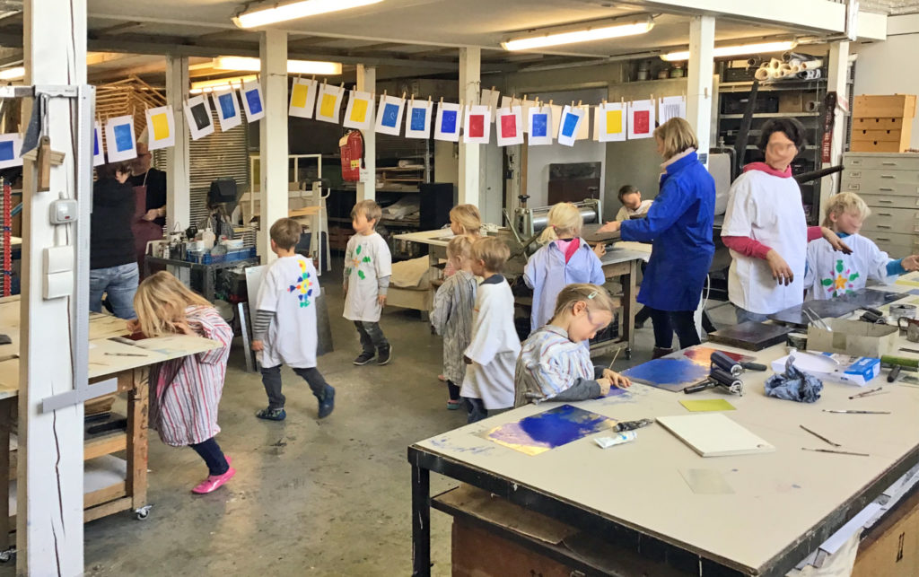 Es wird nach Herzenslust und ganz ohne Leistungsdruck aus der Phantasie oder nach abwechselnden Motivvorschlägen  gezeichnet und gemalt oder gedruckt.